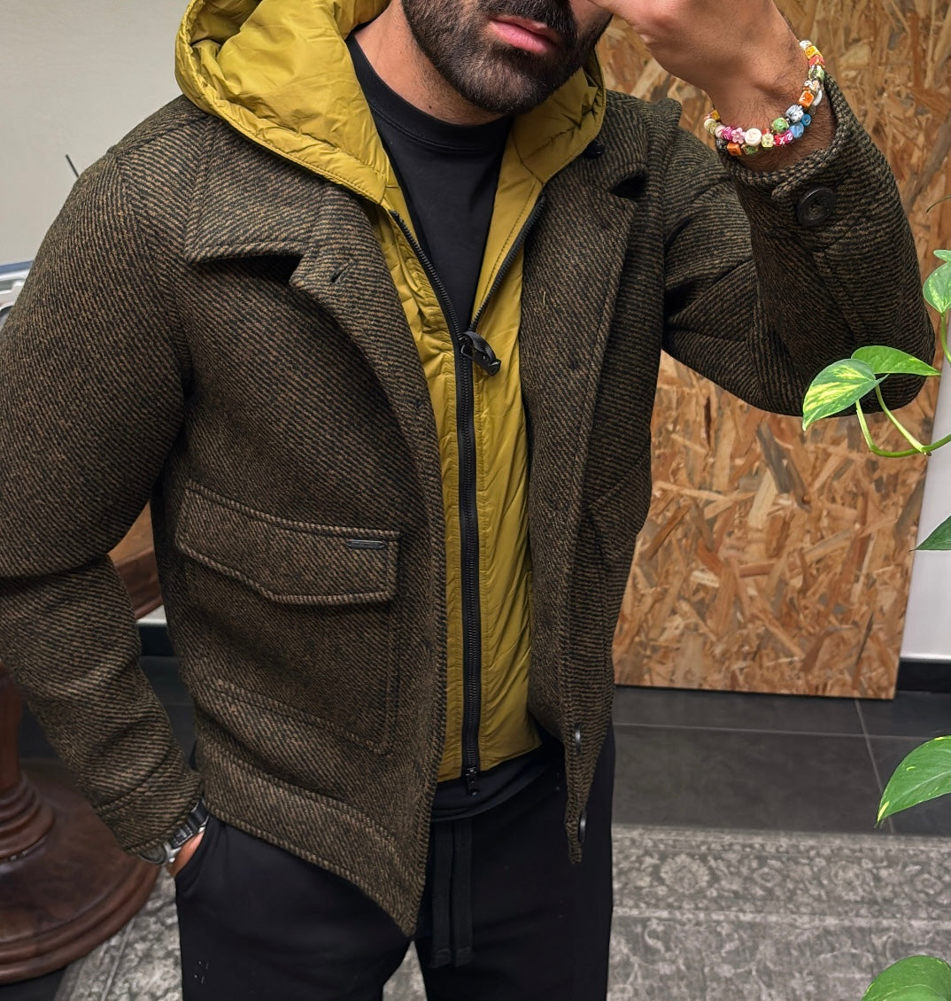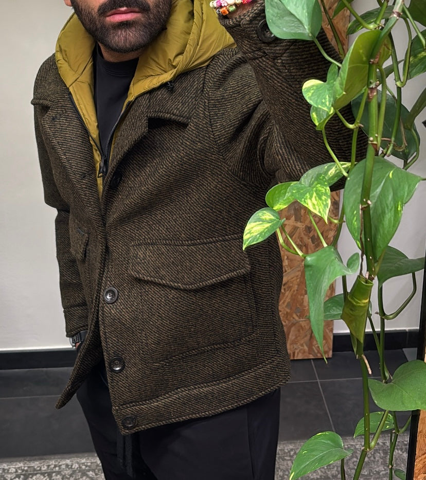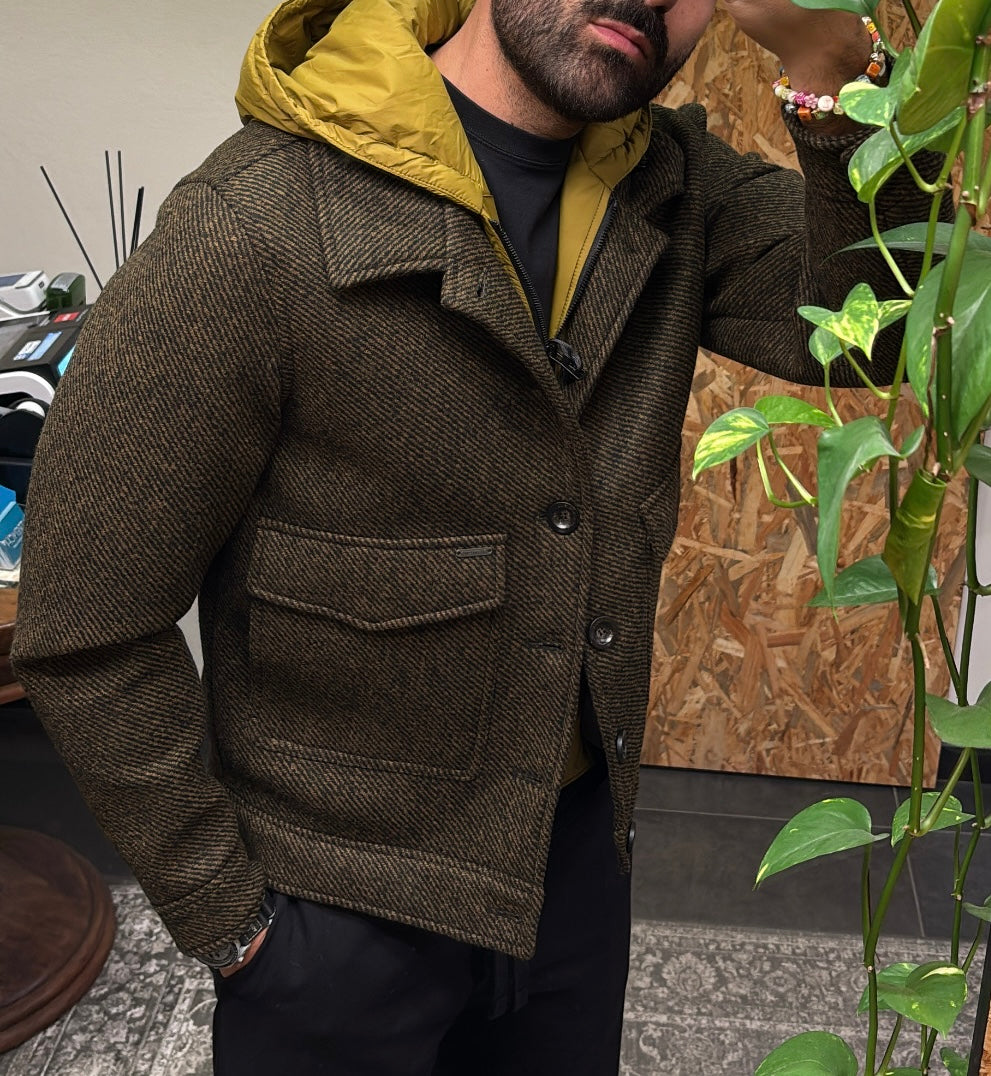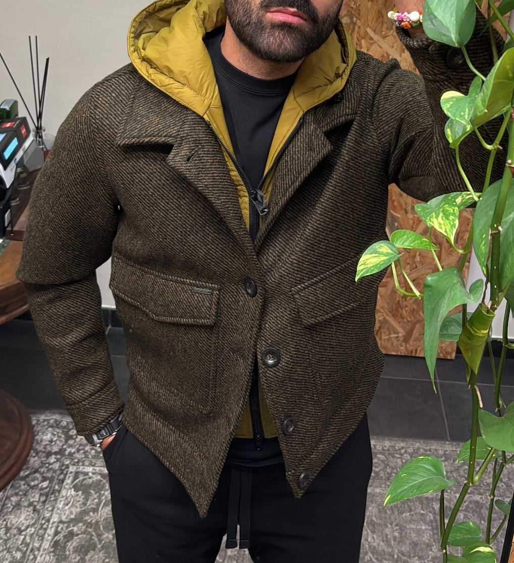 GIACCA CON PETTORINA E CAPPUCCIO STACCABILE