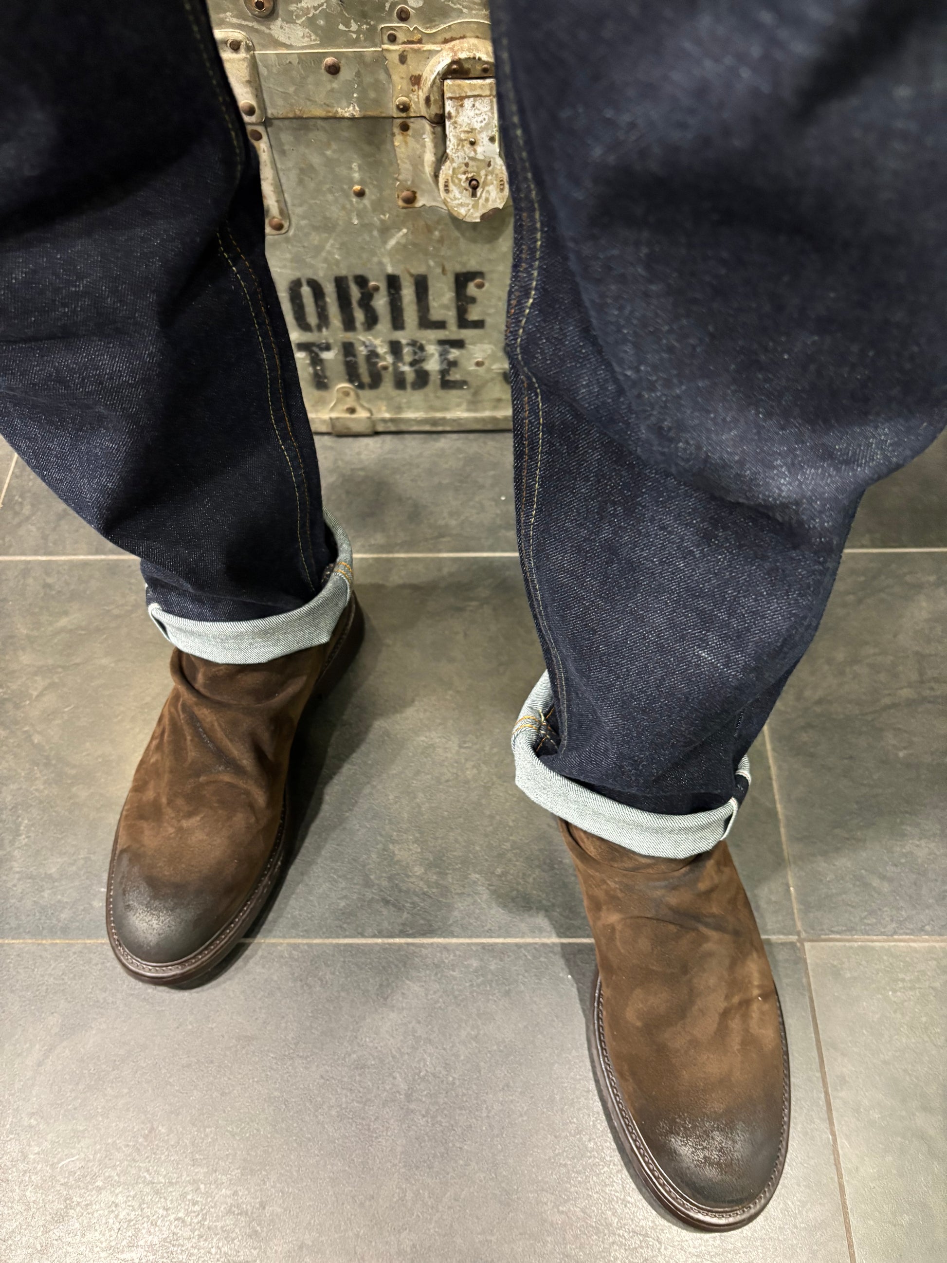 Il modello è alto 185 cm. x 83 kg e indossa una taglia 48 di pantalone e una taglia L di maglieria